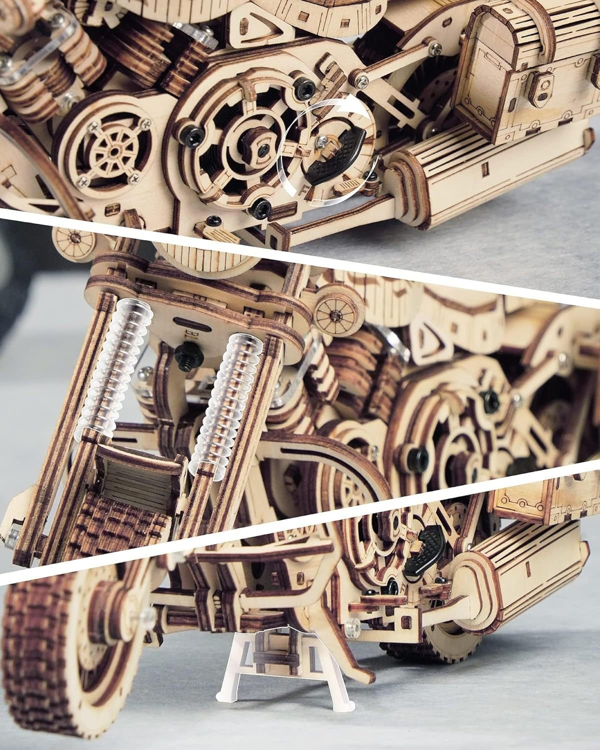 【Amazing Gear Drive】The motorcycle model has a built-in clockwork drive and kickstand brake system, rear-wheel drive. When the clockwork is screwed on and the kickstand is loosened, the motorcycle can move forward. Experience the fun of desktop driving.